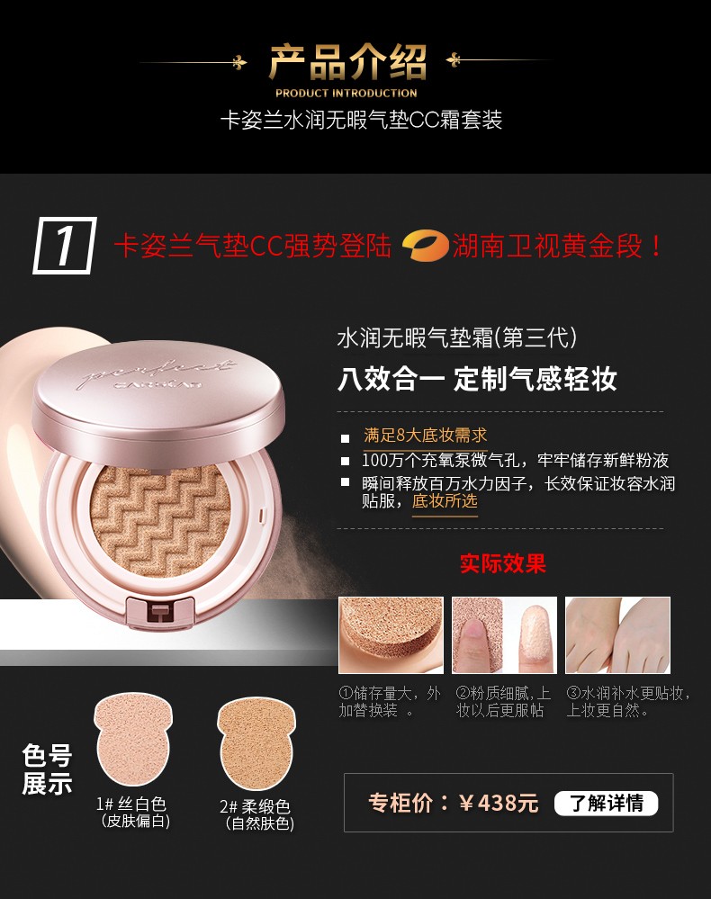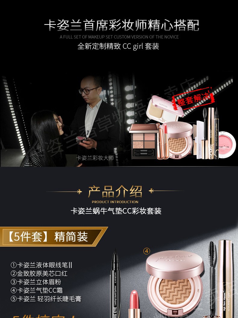 商品名称:卡姿兰(Carslan) 卡姿兰气垫cc霜彩妆套装全套组合初学者淡妆裸妆化妆品学生圣诞礼盒套装女 清新自然妆8件套