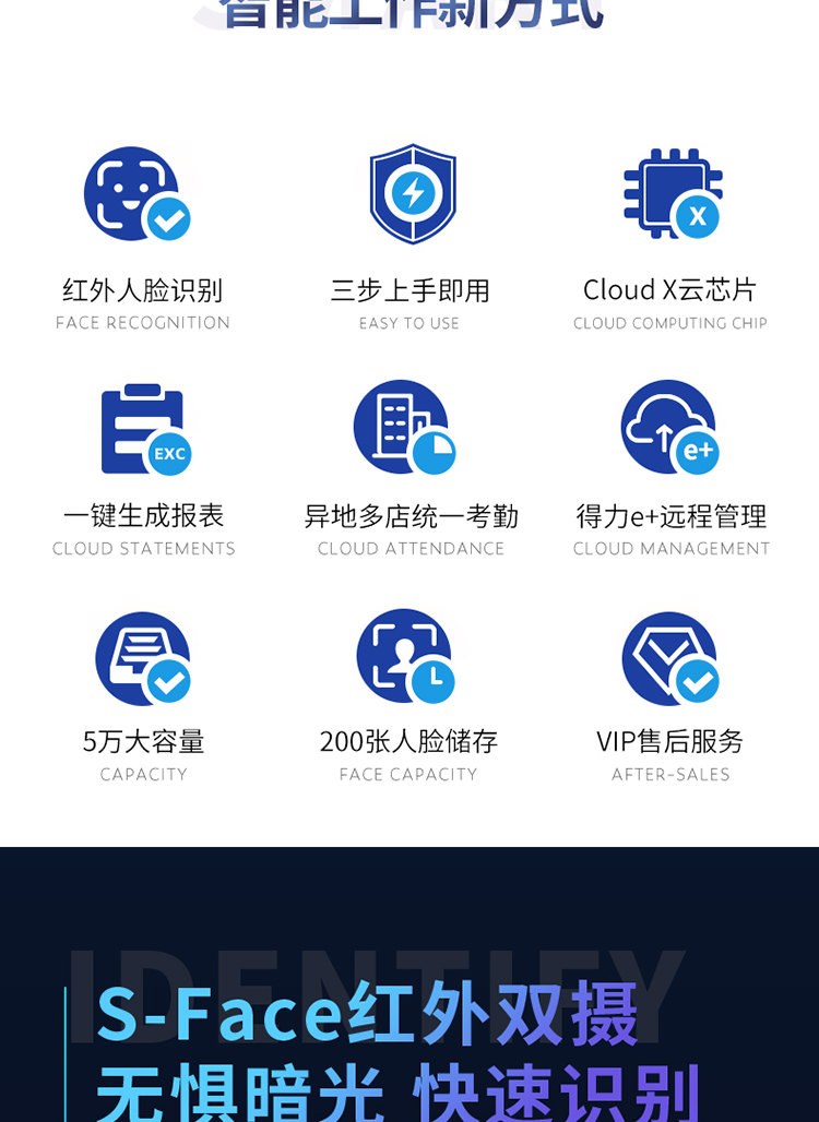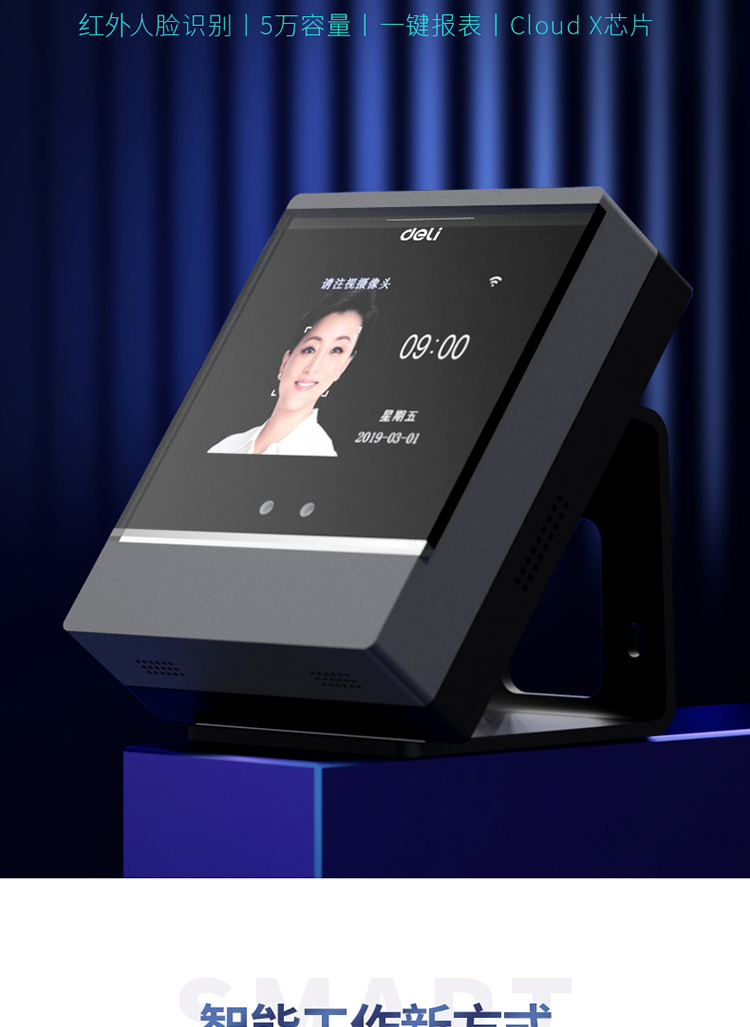 商品名称:得力(deli)智能云考勤机 人脸识别 手机定位考勤 wifi联网打卡机 APP远程管理 考勤数据接口可定制 D2